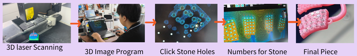 With peak season in full swing, he’s overwhelmed. Skilled stone setters are hard to find, and outsourcing is risky—everyone says they’re too busy, and quality is never guaranteed. He wanted to know: can our 3D scanning automatic diamond stone setting machine solve this problem?